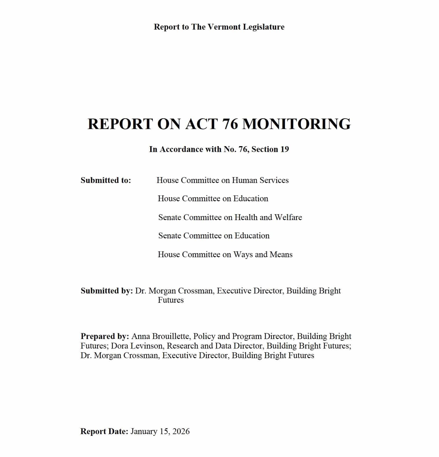 The Vermont Early Ed Bulletin: Reflecting on A New Act 76 Report