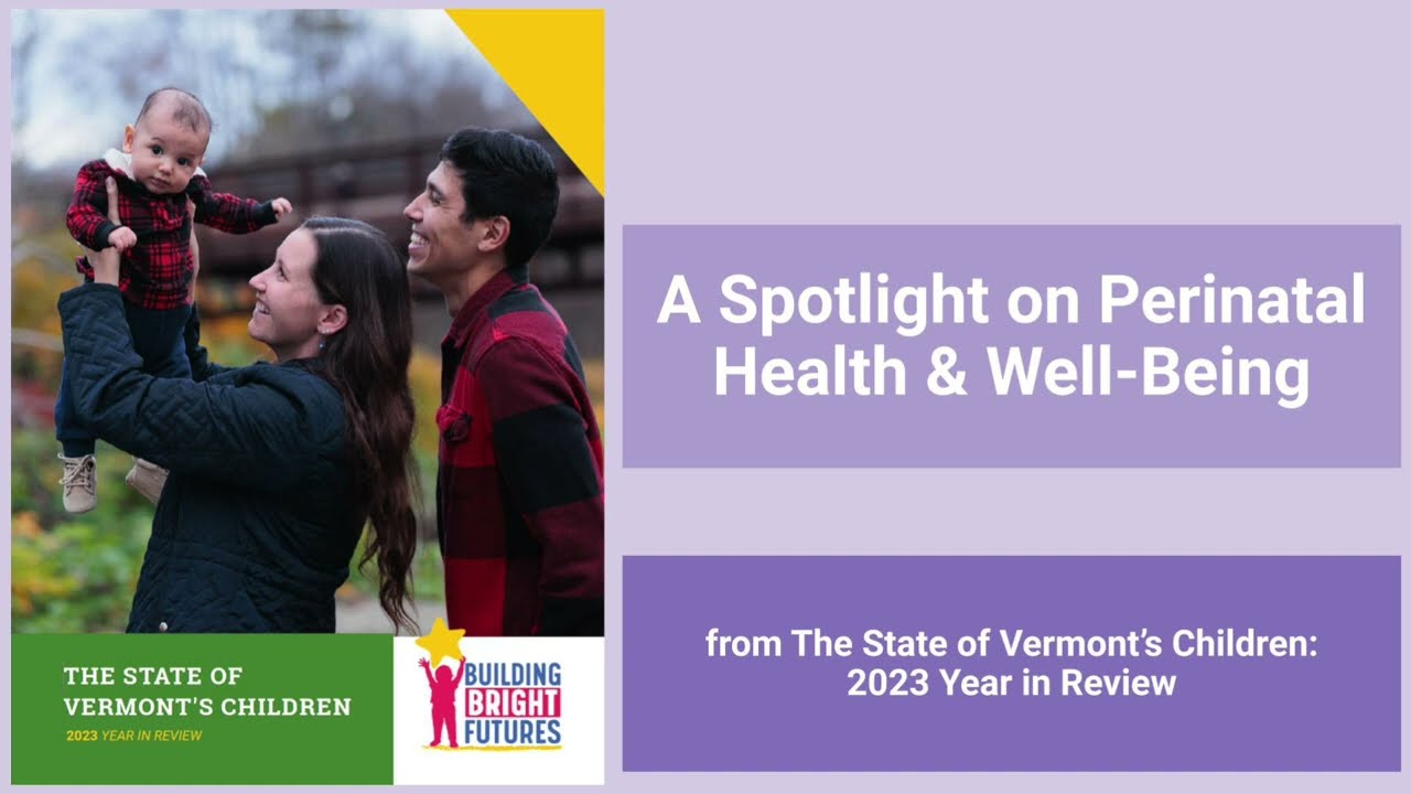This year, the spotlight in BBF’s The State of Vermont’s Children report focuses on perinatal health and well-being. The perinatal period, the time from pregnancy through one year after birth, is so important for the long-term development of each child and the well-being of the whole family.
